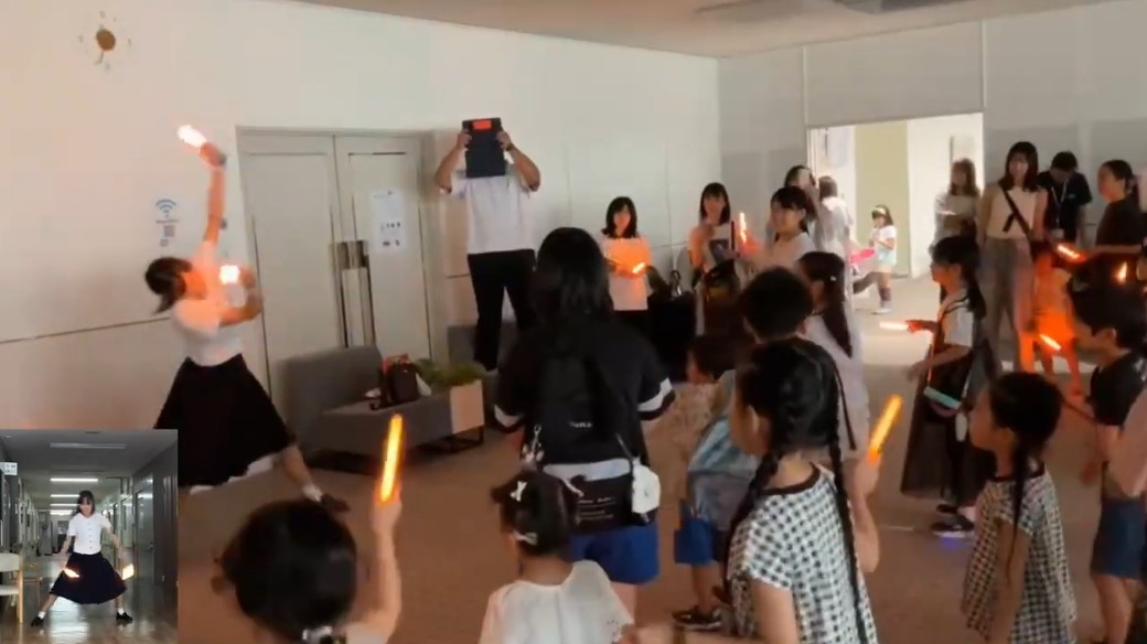「子どもから高齢者まで全世代が、障害の有無にかかわらず、楽しめる全国民健康体操」を考えました。 「ラジオ体操」の動きをベースに「ヲタ芸要素」を追加することで新たな文化を作る挑戦です。 基本動作の順番は決めていますが、4テンポの動きの組合わせで構成されているため参加者の状態(年齢や体力、表情など)に合わせてその場で内容を変えれることが強みです。 「子ども食堂(大分市)」や「高齢者福祉施設(別府市)」などで実施し本校(楊志館高校)だけでなく他校(別府溝部学園高校様)の生徒や福祉施設職員様、卒業した先輩なども加わり楽しく体を動かしています。 |