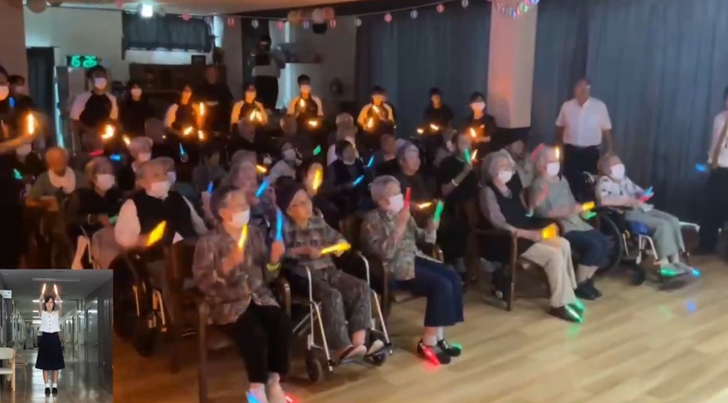 この作品は、愛知県の「社会福祉法人愛光園」の設立50周年記念として、法人内の各事業所でそれぞれ企画を考える中、1事業所である老人保健施設相生では、自施設の30周年記念も兼ねて、ご利用者が日々行う体操に活用することを主目的として作りました。 歌詞は全職員にアイディアを募り、施設内の棟の名称などを盛り込みました。作曲は未経験の看護師、体操はリハビリスタッフが担当しました。映像には5歳から107歳までの職員、職員家族、ご利用者が参加。撮影、編集に1年以上を費やしての完成となりました。 体操は車椅子に座ったままでも気軽に参加できる内容となっています。 コロナ禍で閉鎖的になってしまった施設にもう一度、地域の皆様と一緒に活気と明るさを取り戻すべく、体を動かすきっかけづくりにも一役買っています。 |